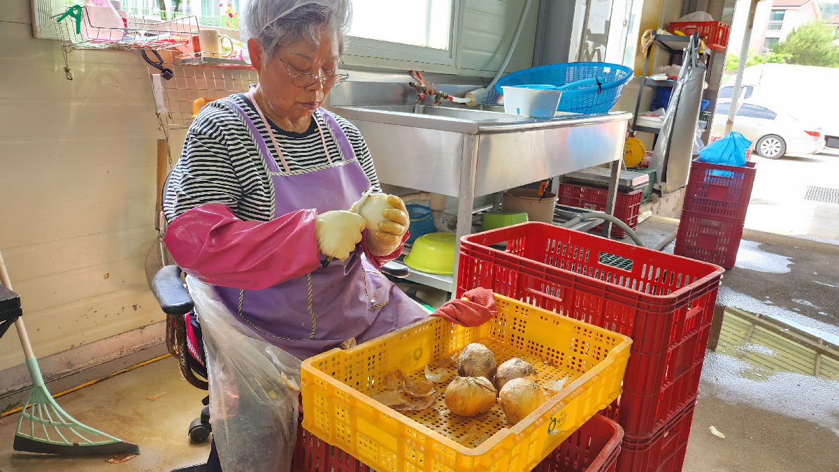 퇴직후에도 경제활동을 희망하시는 어르신들에게 사회·경제활동에 참여하는 기회와 더 많은 어르신들에게 부가소득을 올리는 기회를 제공합니다. 인근 식품공장이나 단체급식소에 야채를 다듬어 제공하고, 우거지, 말랭이 등 농산물을 단순가공하는 시니어 복지작업장을 운영하고 있습니다.